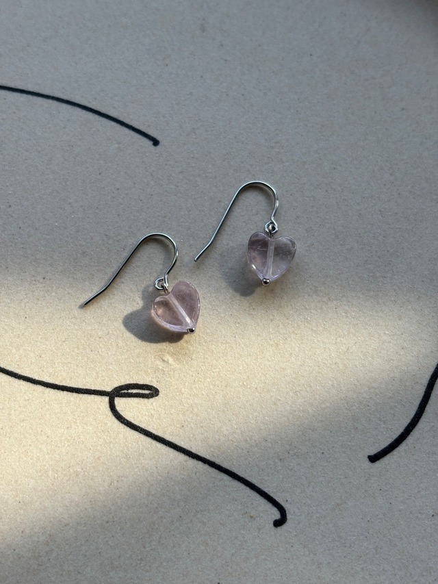 小ぶりのハート型のアメジストピアス 全長:2cm弱 ピアスフック:ステンレス