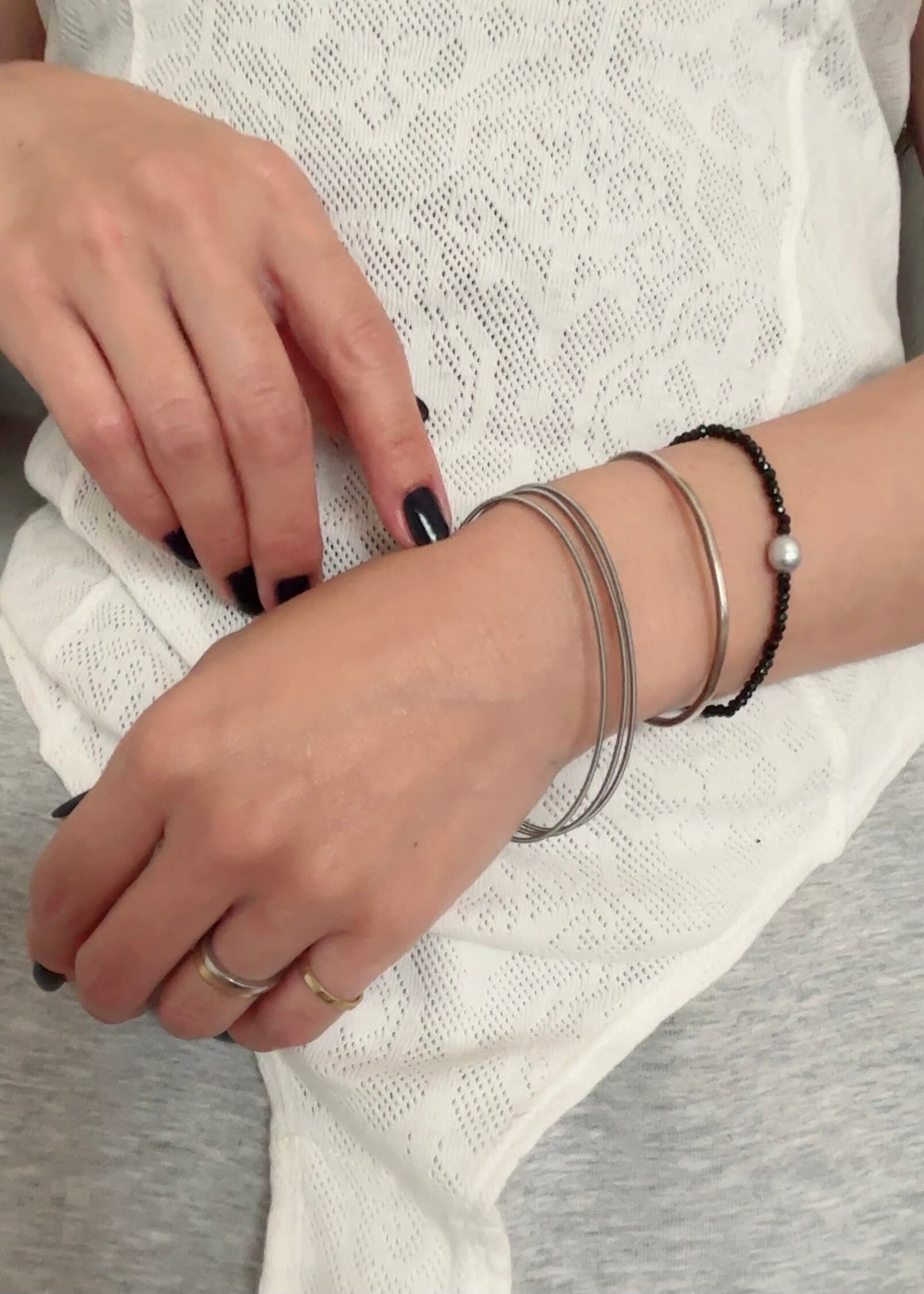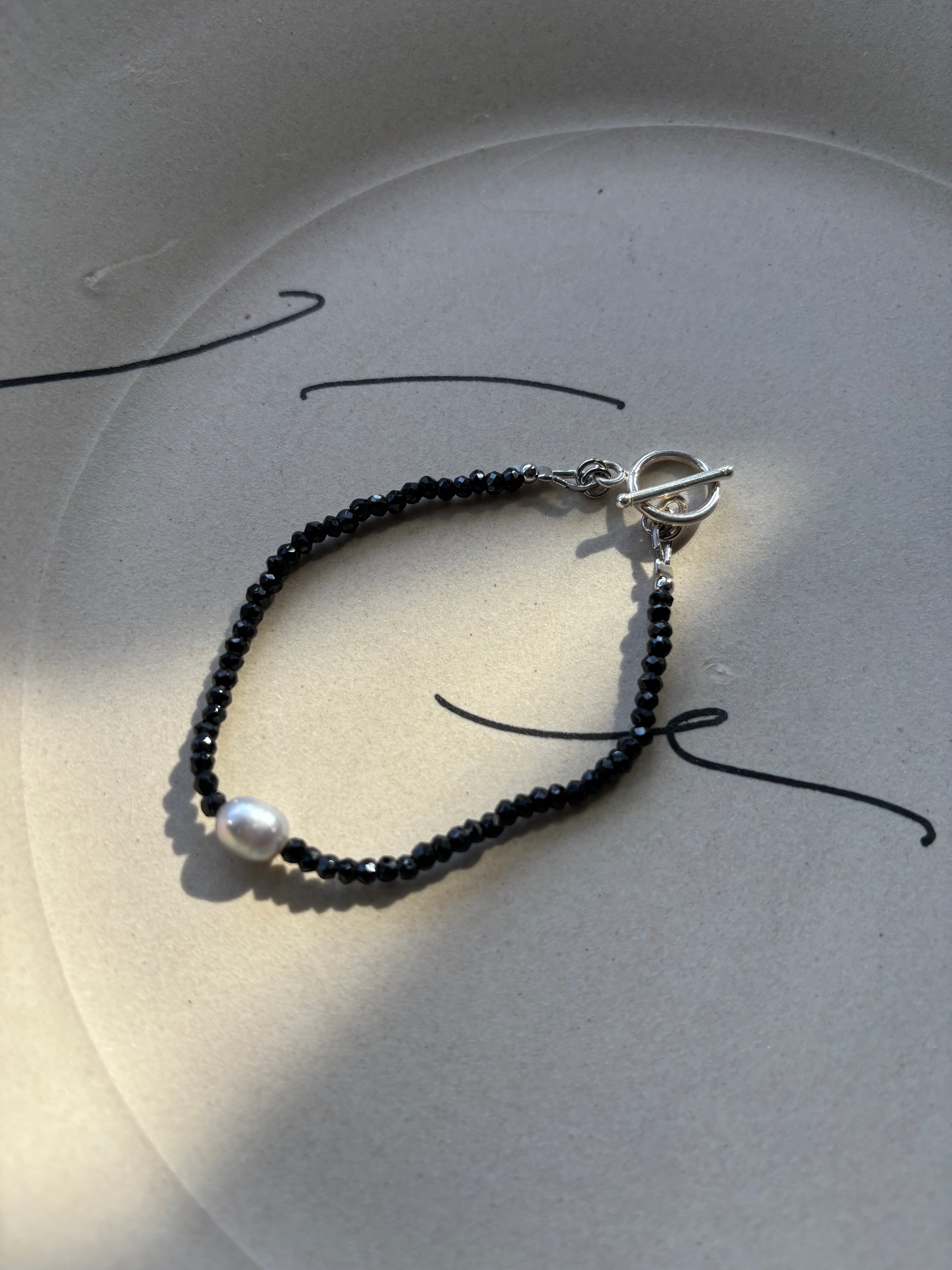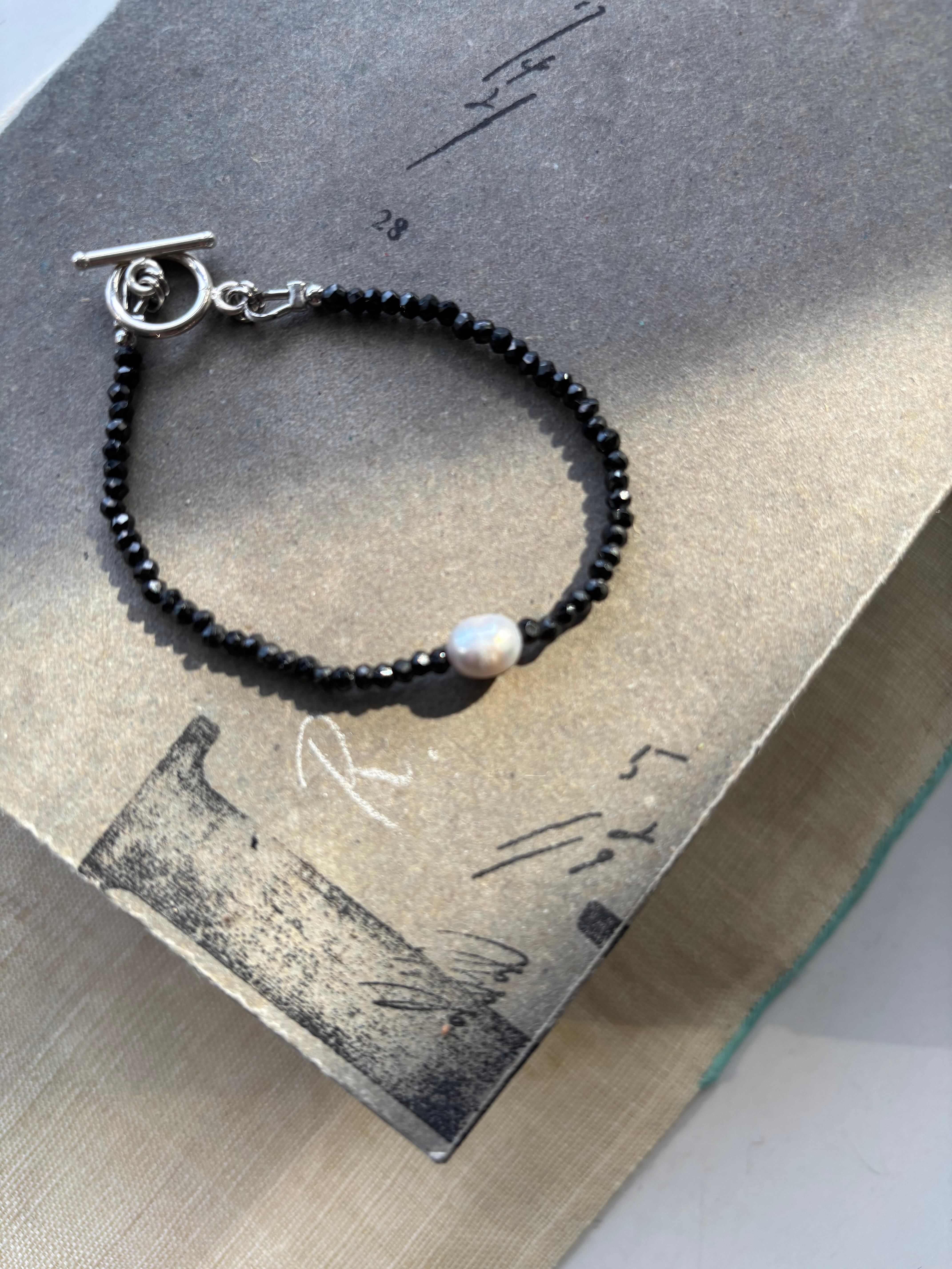 ブラックスピネルと淡水パールを合わせたブレスレット