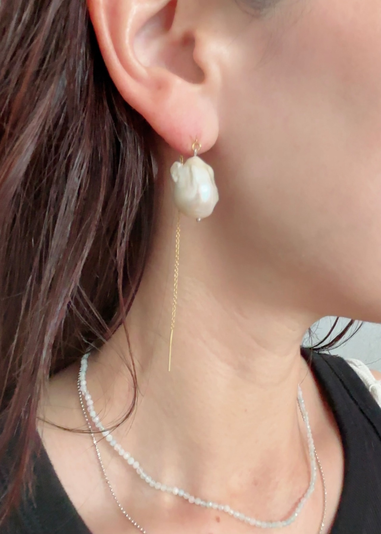 14kgfのアメリカンピアスに大きな淡水バロックパールを合わせました