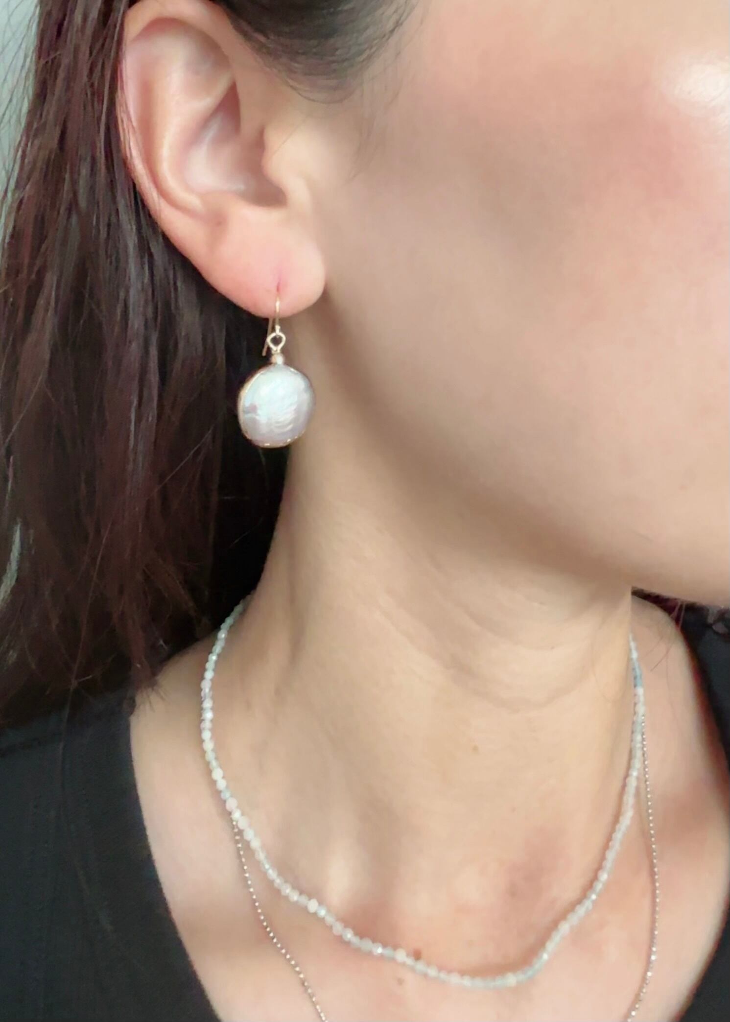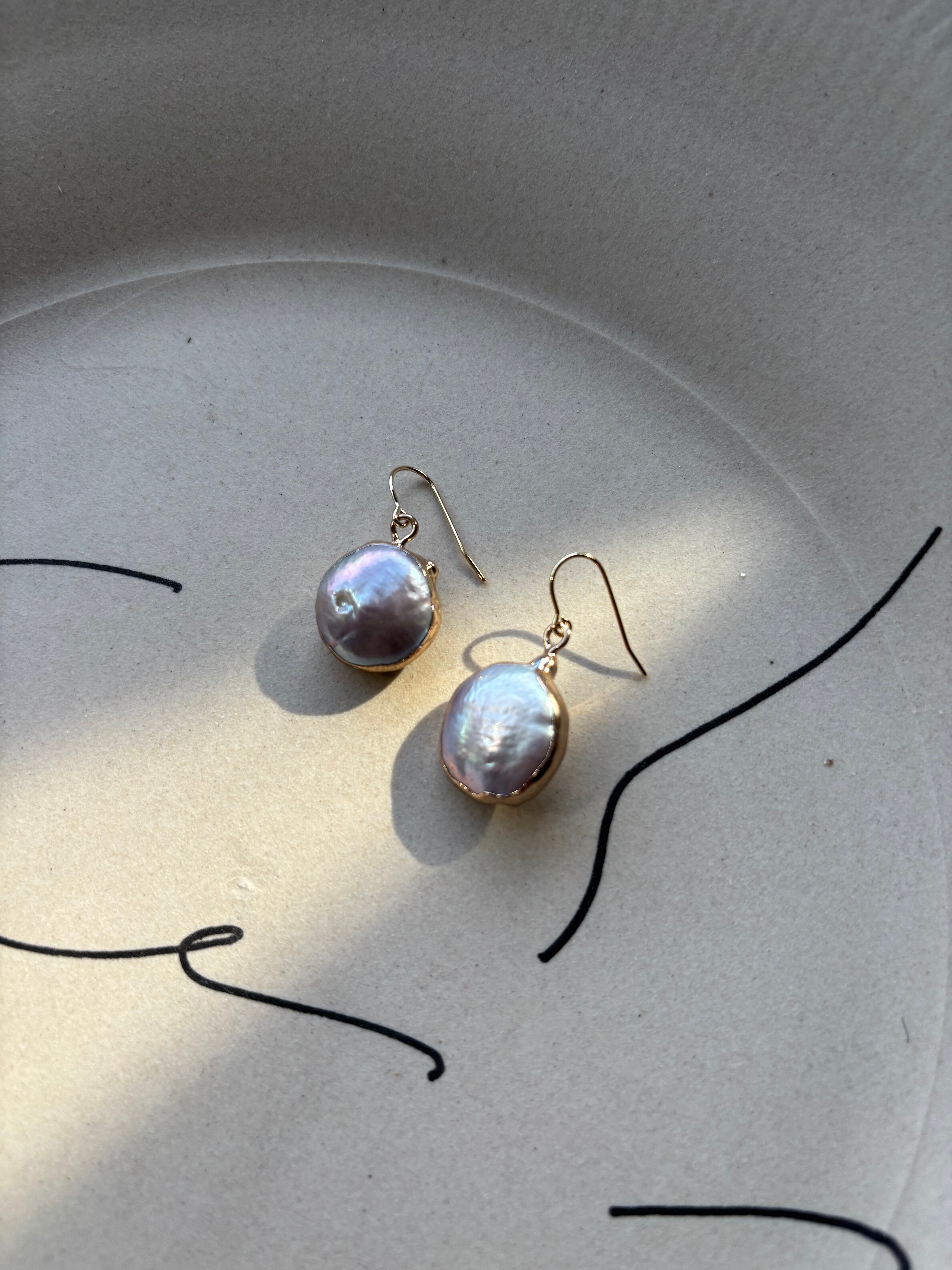 周りをゴールドで巻いた淡水パールのピアス